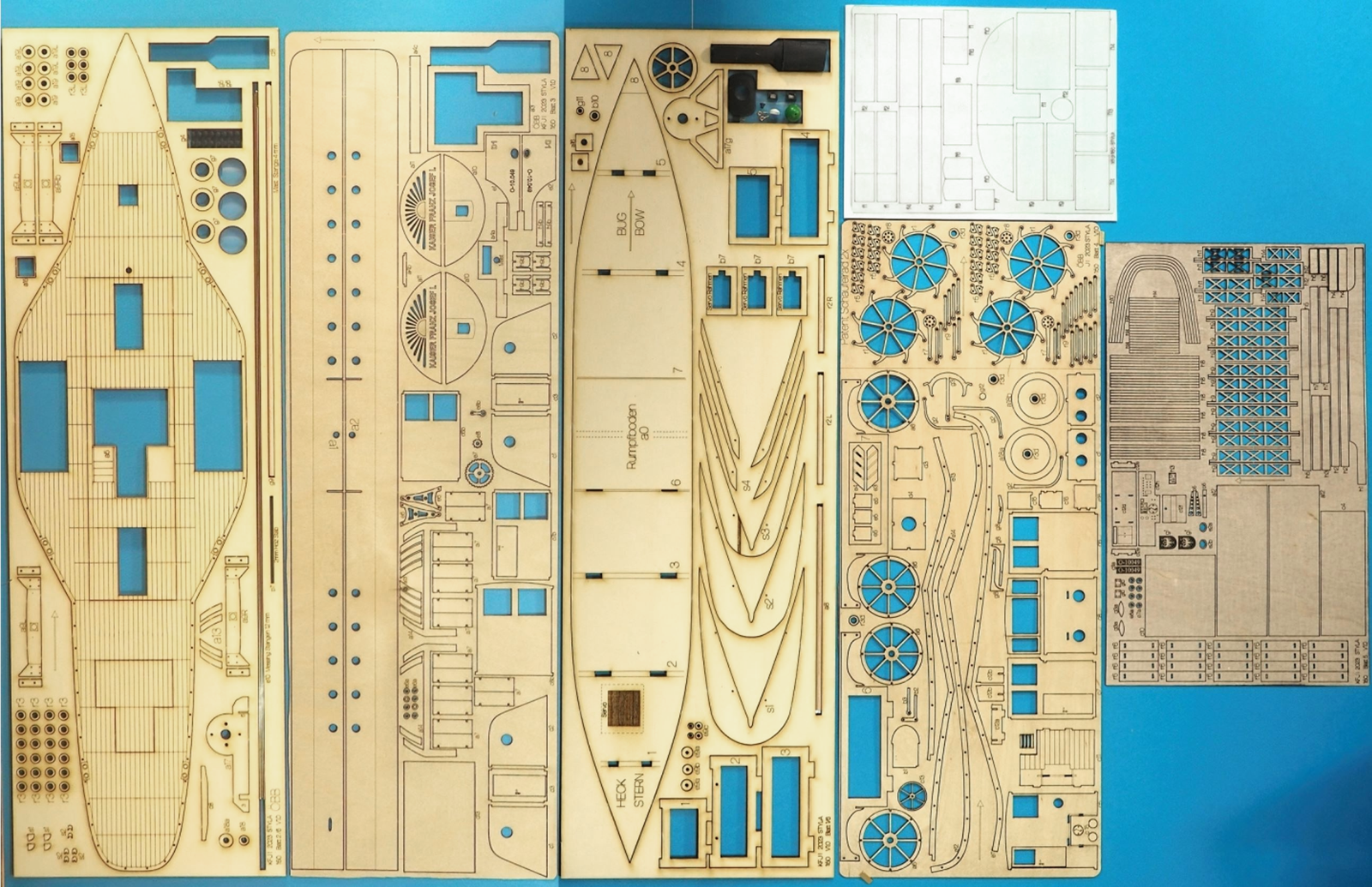 auf geraden Flächen zu gewährlesiten ist der Rumpf unten flach, alle Teile sind mit dem Laser fertig ausgeschnitten